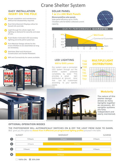 The Crane Shelter is a platform. This is a highly customizable shelter that I developed early in 2025. It serves many purposes for SELS, mostly covering all the unique city requirements when they go to bid for a revamp of their transit system. We have made this shelter with many different aesthetics, functions, solar generation, and sizes to accommodate all of the needs presented to us over the year by cities all over the United States. This particular version of the Crane Shelter was developed for Hallandale Beach in Florida.